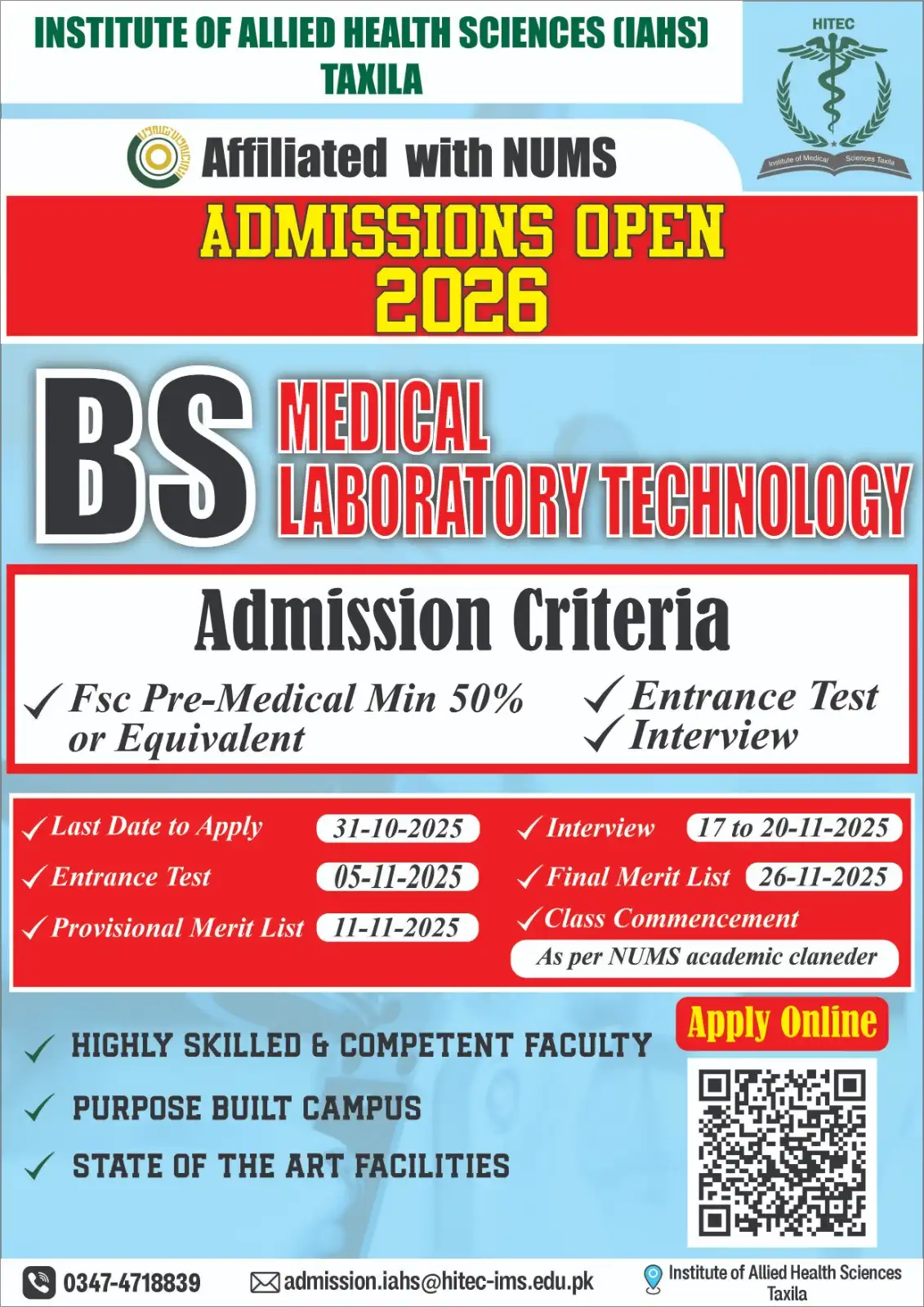 HITEC Institute of Medical Sciences (HITEC-IMS) is organizing a Motivational Seminar on Professionalism on 30th October 2025, aimed at inspiring students of MBBS, BDS, Nursing, and Allied Health Sciences to embrace the true spirit of…