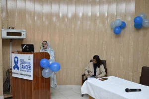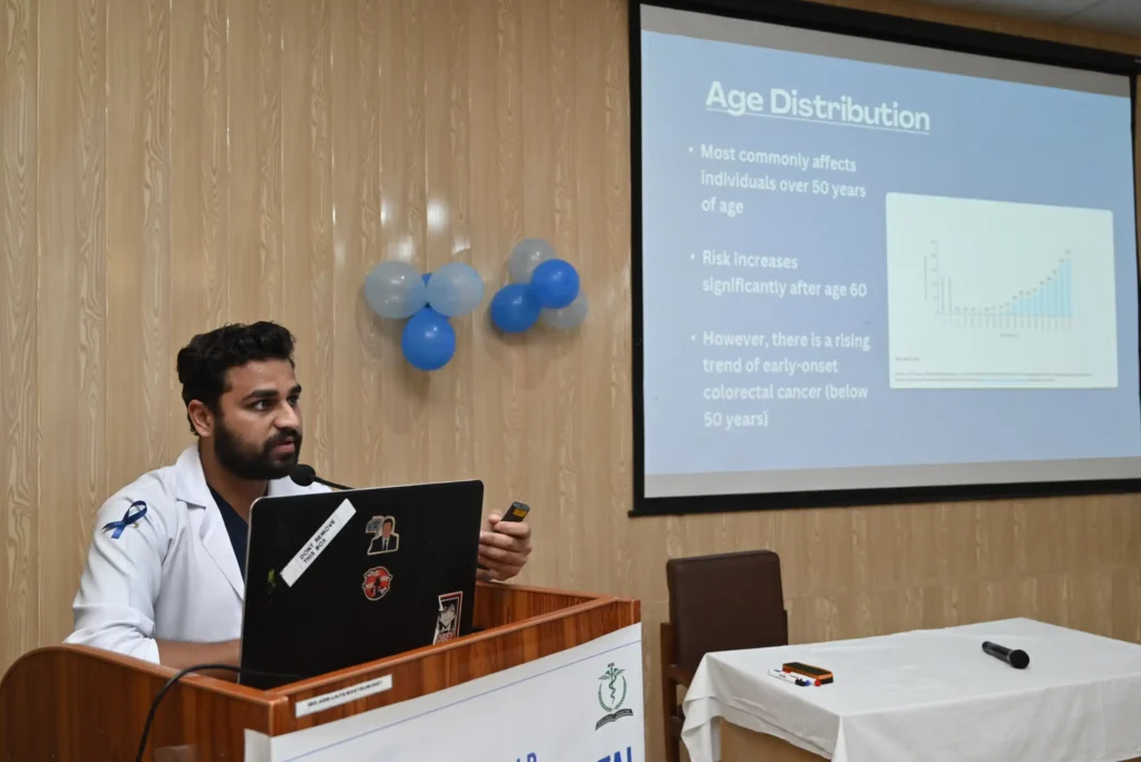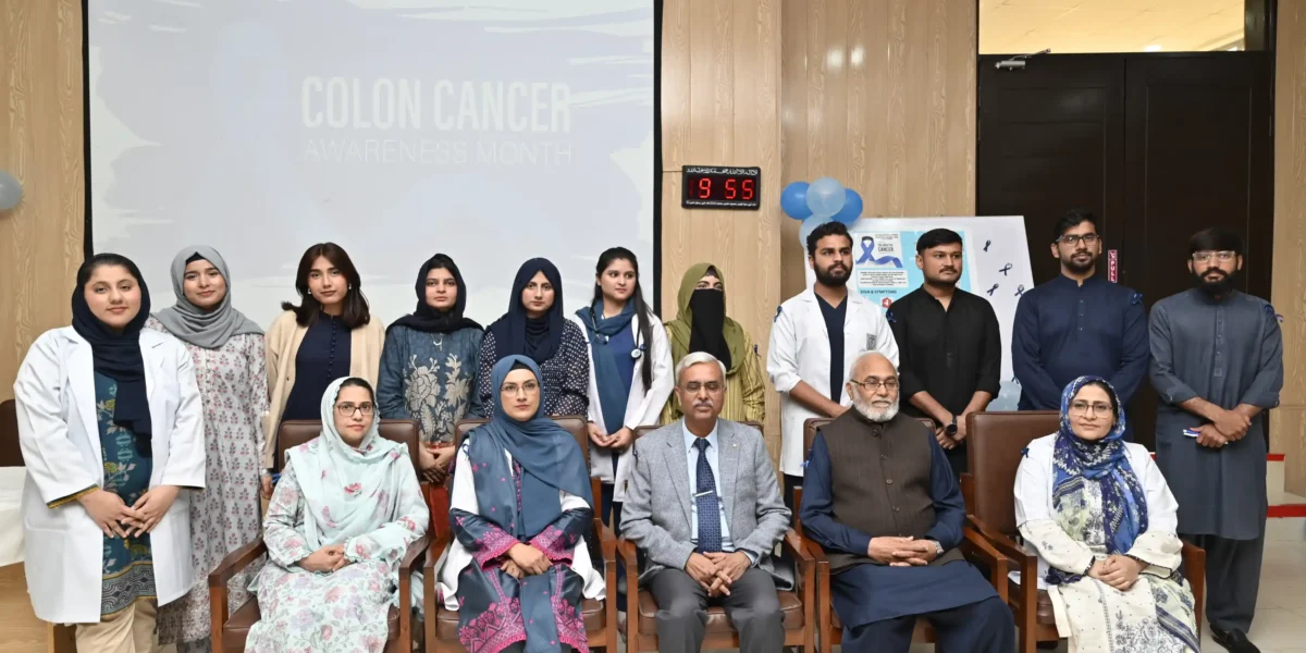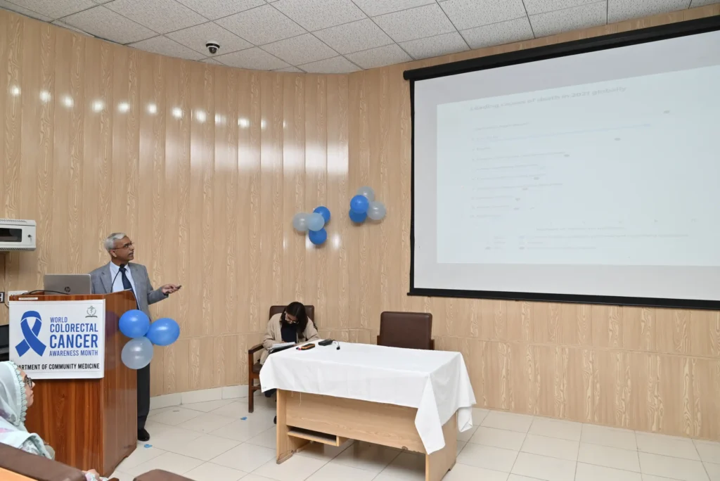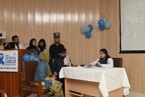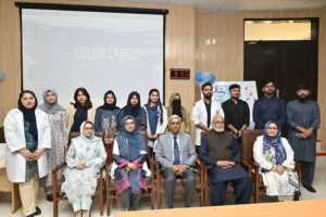 On February 20, 2026, the Department of Community Medicine at HITEC-IMS, led by Prof. Dr. Aashi Ahmed, organized a Colorectal Cancer Awareness Session under the theme “Early Detection – New Direction – Cancer Awareness.” The program began with Quran recitation and an opening note by Assistant Professor Community Medicine Dr. Asifa Afzal. Fourth-year MBBS students presented on colorectal cancer epidemiology, screening, and prevention, followed by a role play highlighting timely screening. Distinguished guests included Maj Gen Prof Hafeez-Ud-Din HI(M) (Retd), Principal HITEC-IMS, and Brig (R) Dr. Riaz Anwar Bashir (HOD Surgery), who discussed treatment options. Professor Community Medicine Dr. Anwar Bibi shared a personal story underscoring the importance of awareness. The Principal concluded by commending students and stressing early detection as key to reducing the global burden of colorectal cancer.