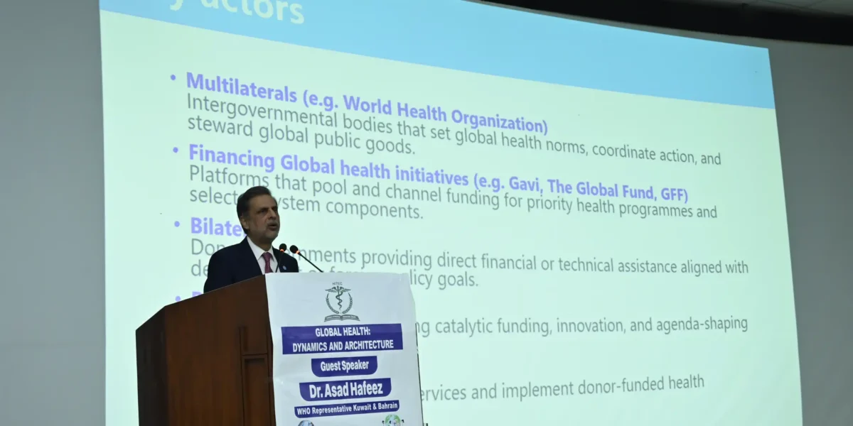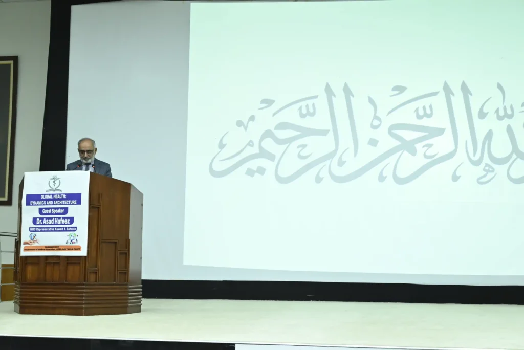 The HITEC-IMS hosted a lecture on Global Health: Dynamics and Architecture on 8th January 2026. The lecture is delivered by guest speaker Dr. Asad Hafeez, WHO Representative and Head of Mission in Kuwait and Bahrain. This lecture provided valuable insights into the evolving landscape of global health systems, international health governance, and the strategic frameworks shaping healthcare delivery worldwide.