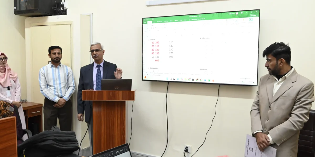 Muhammad Naeem Sarfraz, Assistant controller examination NUMS gave a presentation explaining internal assessment regulation, Breakdown of assessment components and institutional responsibility for compliance. Â Col.Dr. Asif Shahbab, Officer Incharge Examination HITEC-IMS, talked about, frequent error in internal assessment compilation, best practices for accurate data handling and strategies for minimizing discrepancies. Mr. Wajid Anwar, Assistant manager IT Conducted a hands-on workshop on Microsoft excel, use of data management tools, creating tables, charts and verifying assessment data. Mr. Nouman Bashir, Assistant controller Examination NUMS also gave hands on training on Microsoft excel, Practical aspects of data entry compilation, common mistakes and remedies to rectify them.