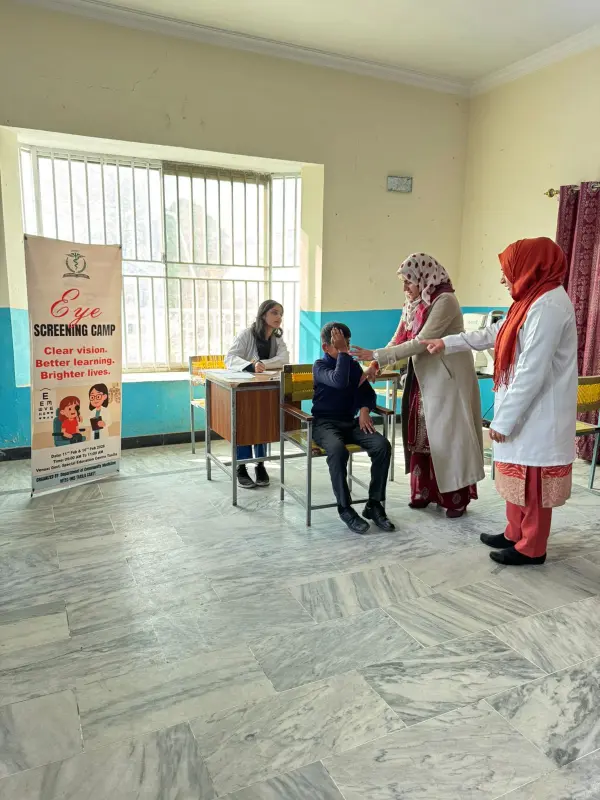 4th year MBBS students visited school of children with special needs . Community medicine in collaboration with eye department setup a screen camp for refractive errors at the school. Screened students are refred to HIT for firther treatment
