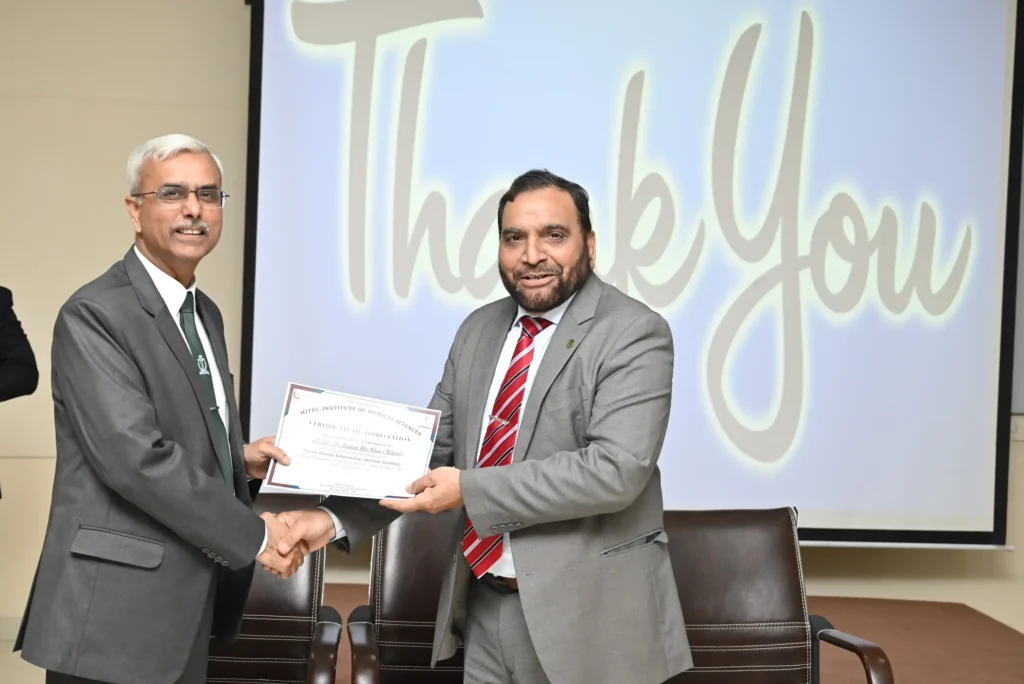 HITEC-IMS will organize a workshop on “Doctor-Patient Relationship: Attitude Building” on February 12, 2026, facilitated by Lt. Col Dr. Nadeem Yar Khan (Retired) from CMH Lahore. The session will focus on developing professional attitudes and communication skills essential for fostering trust and empathy in clinical practice. Participants will gain valuable insights into building therapeutic relationships that enhance patient care and satisfaction.